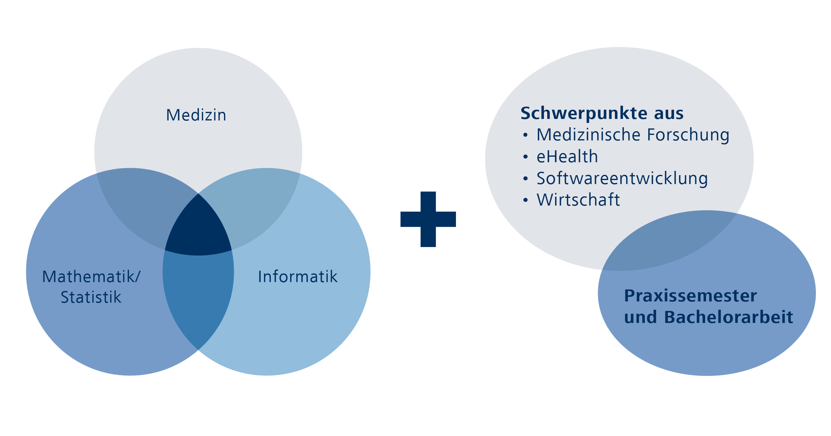 Im Studium lernen Sie die Grundlagen der Medizin, Mathematik/Statistik und Informatik kennen. Darüber hinaus besteht die Möglichkeit, durch die Wahl von Schwerpunkten das Studium nach den eigenen Interessen zu gestalten.