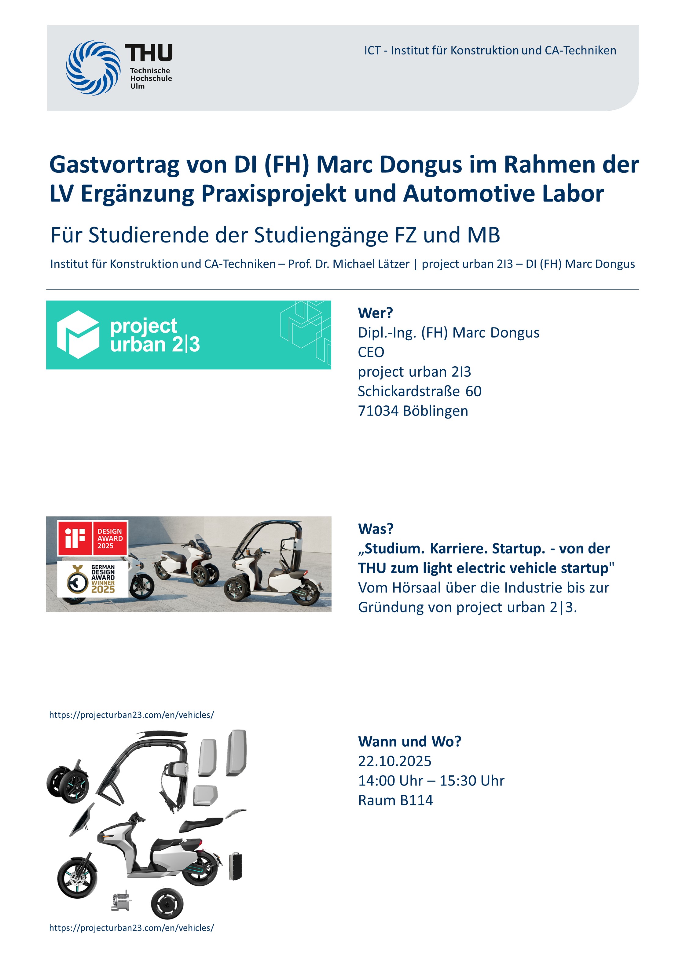 Im Rahmen der Lehrveranstaltung Präsentation erlernen die Studierenden der Studiengänge Fahrzeugtechnik und Maschinenbau Präsentationstechniken zur Vorstellung Ihrer Konstruktionen.
