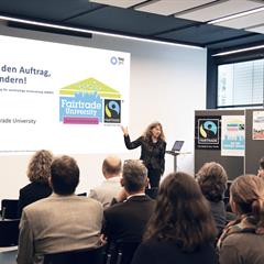 The greater significance of certification as a Fairtrade University is that regular "fair trade" activities promote awareness of global interrelationships.These activities are coordinated by our steering committee, with members from the Students' Council, the University of Applied Sciences administration and the Students' Union.As a University of Applied Sciences with a technical profile, we also highlight issues such as, for example, the uncontrolled extraction of raw materials for electronic products.Responsible, future-oriented teaching and transformative research projects are further important contributions our University of Applied Sciences makes to a fairer world in terms of sustainable development and fair trade.